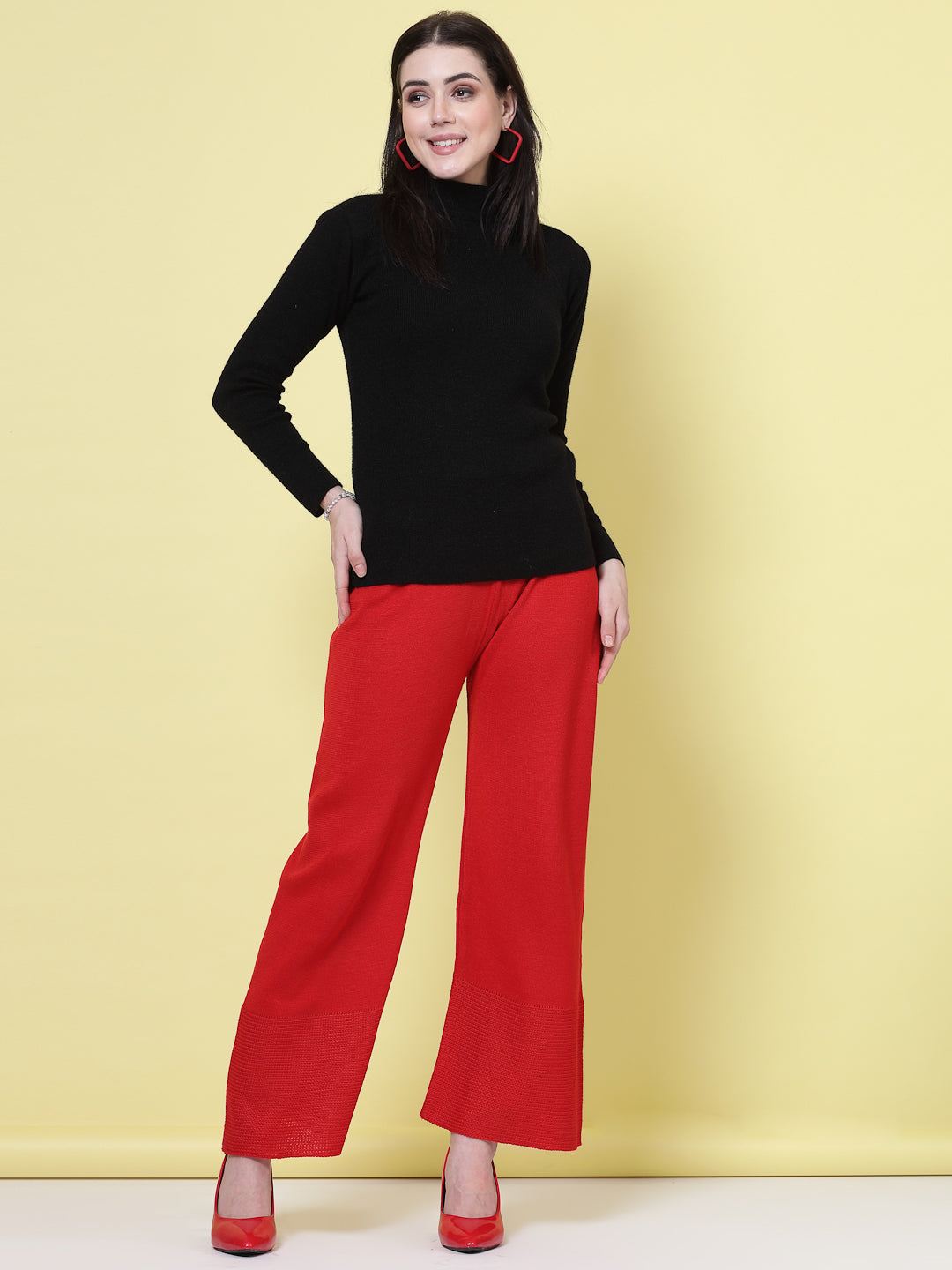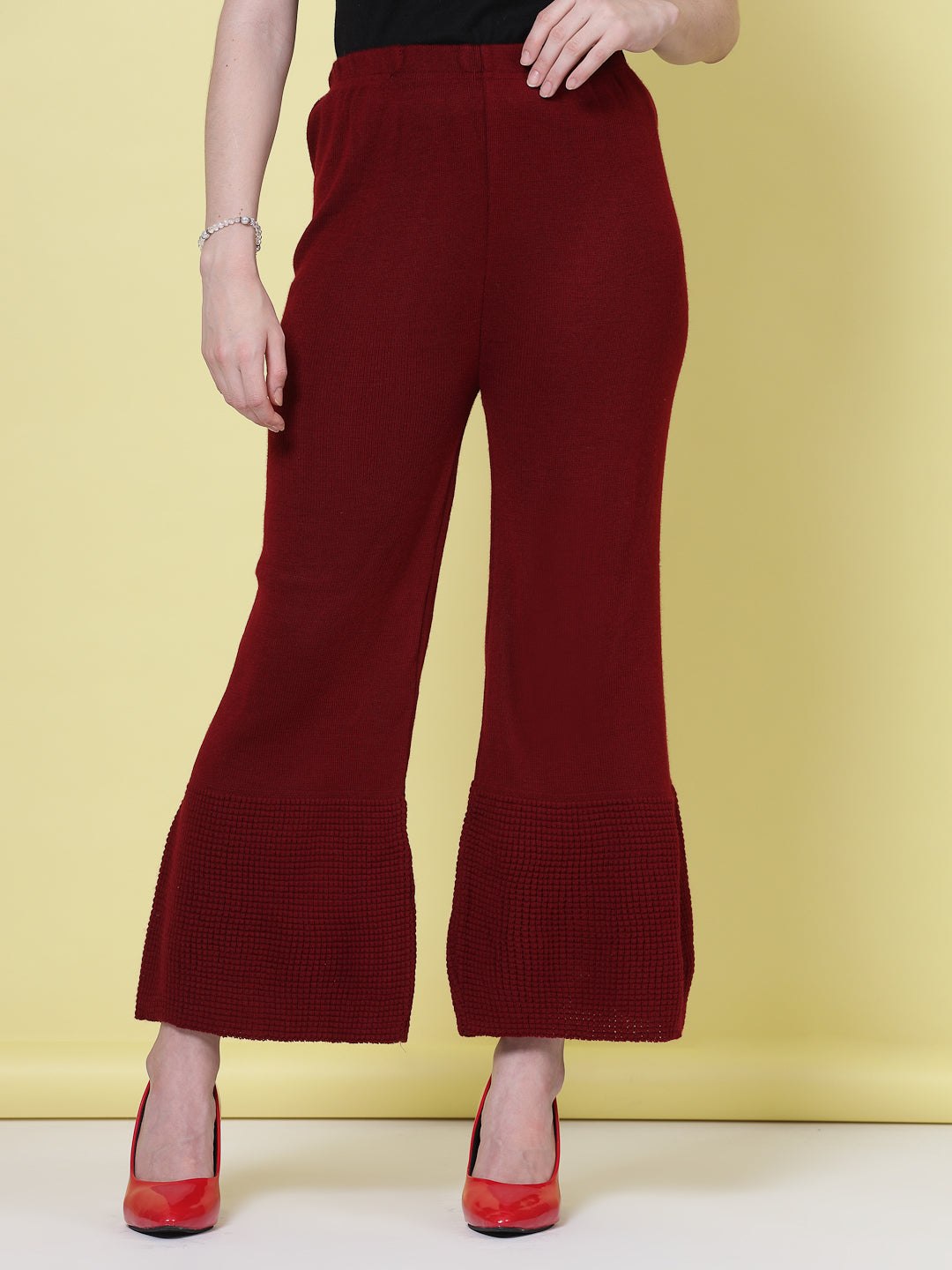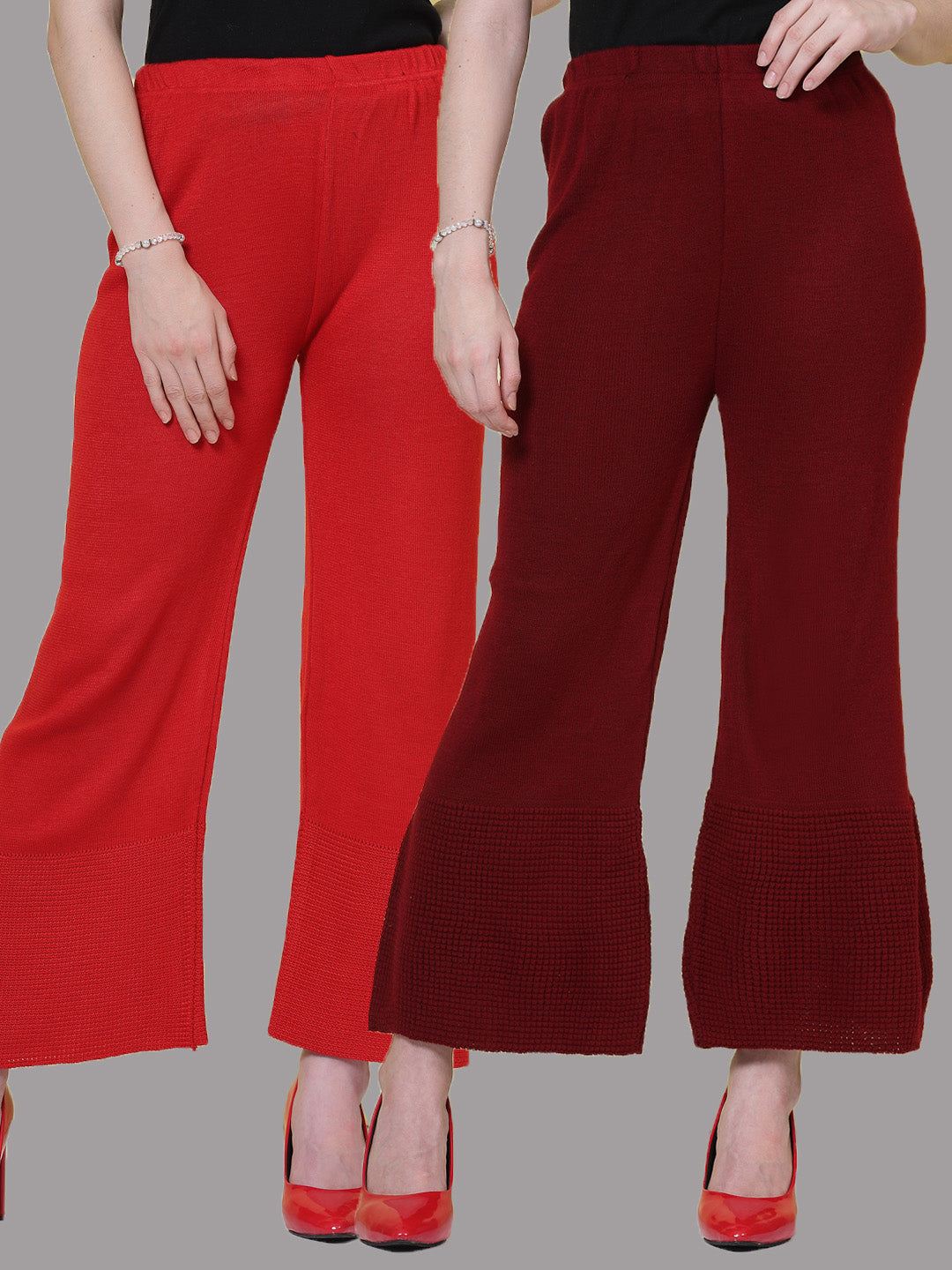 Upgrade your winter wardrobe with this elegant Red & Maroon Solid Woolen Palazzo (Pack of 2). Each woolen palazzo is made from soft, breathable fabric designed to provide warmth and superior comfort on chilly days. The timeless solid colors make these woolen palazzos easy to pair with kurtis, sweaters, or tunics, creating endless styling options. Whether you’re at work, out for errands, or lounging at home, this woolen palazzo set ensures you look polished while staying cozy. The flattering fit, smooth texture, and fine stitching make each woolen palazzo a reliable winter essential. Add this versatile woolen palazzo pack to your collection for a premium blend of comfort, function, and seasonal sophistication.