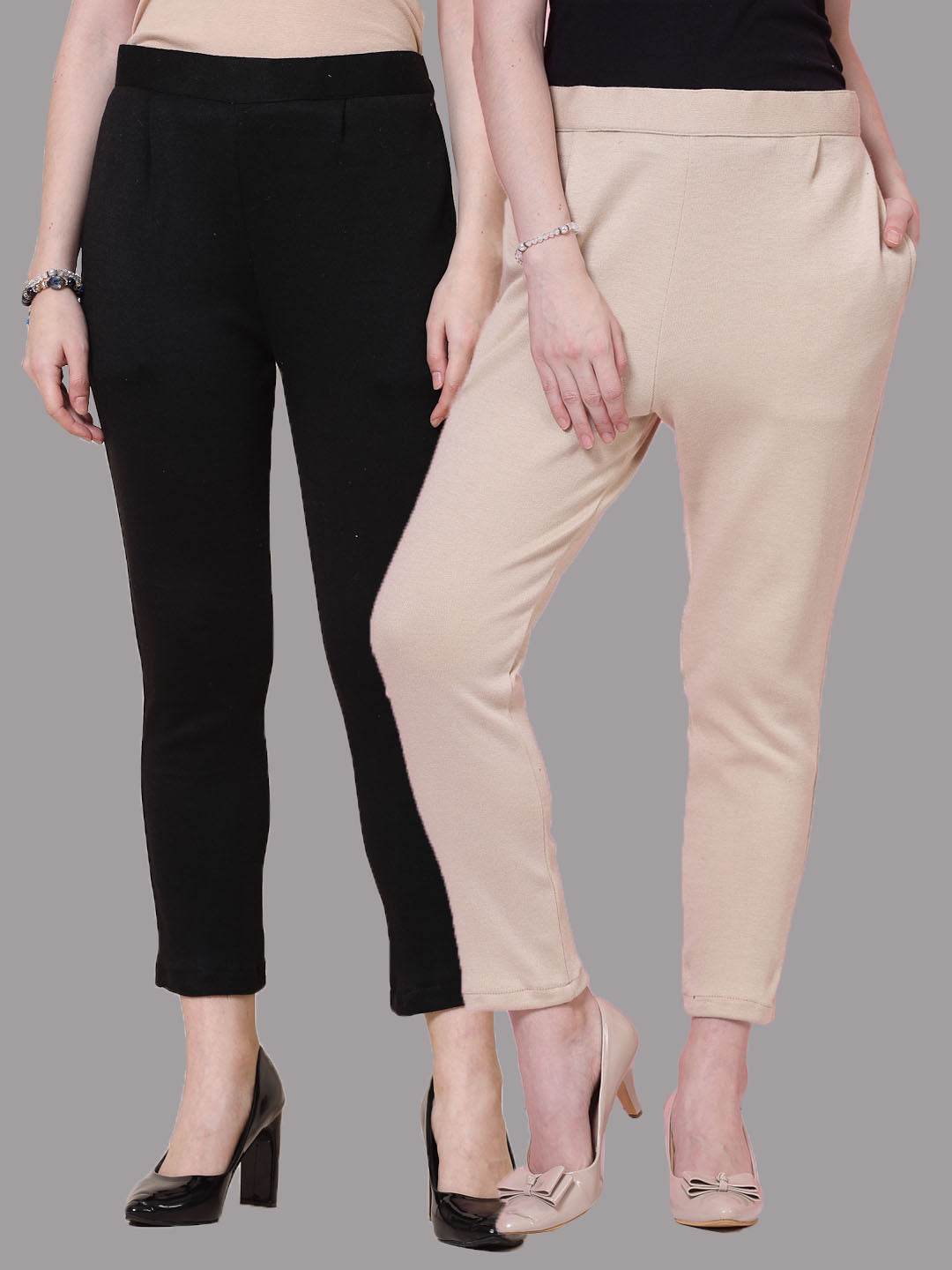 Upgrade your winter essentials with this Black & Light Fawn Solid Woollen Trouser (Pack of 2)—crafted for warmth, comfort, and everyday elegance. These woollen trousers are made from soft, breathable fabric that keeps you cozy without compromising on style. Perfect for office wear, casual outings, or lounging at home, these woollen trousers offer a snug yet flexible fit. The classic colors pair well with winter tops, sweaters, and kurtis. With durable stitching and a stretchable waistband, these woollen trousers combine function with fashion. Easy to wash and maintain, this set of woollen trousers is a smart, stylish choice for cold-weather dressing. Elevate your wardrobe with our versatile and cozy woollen trousers today.