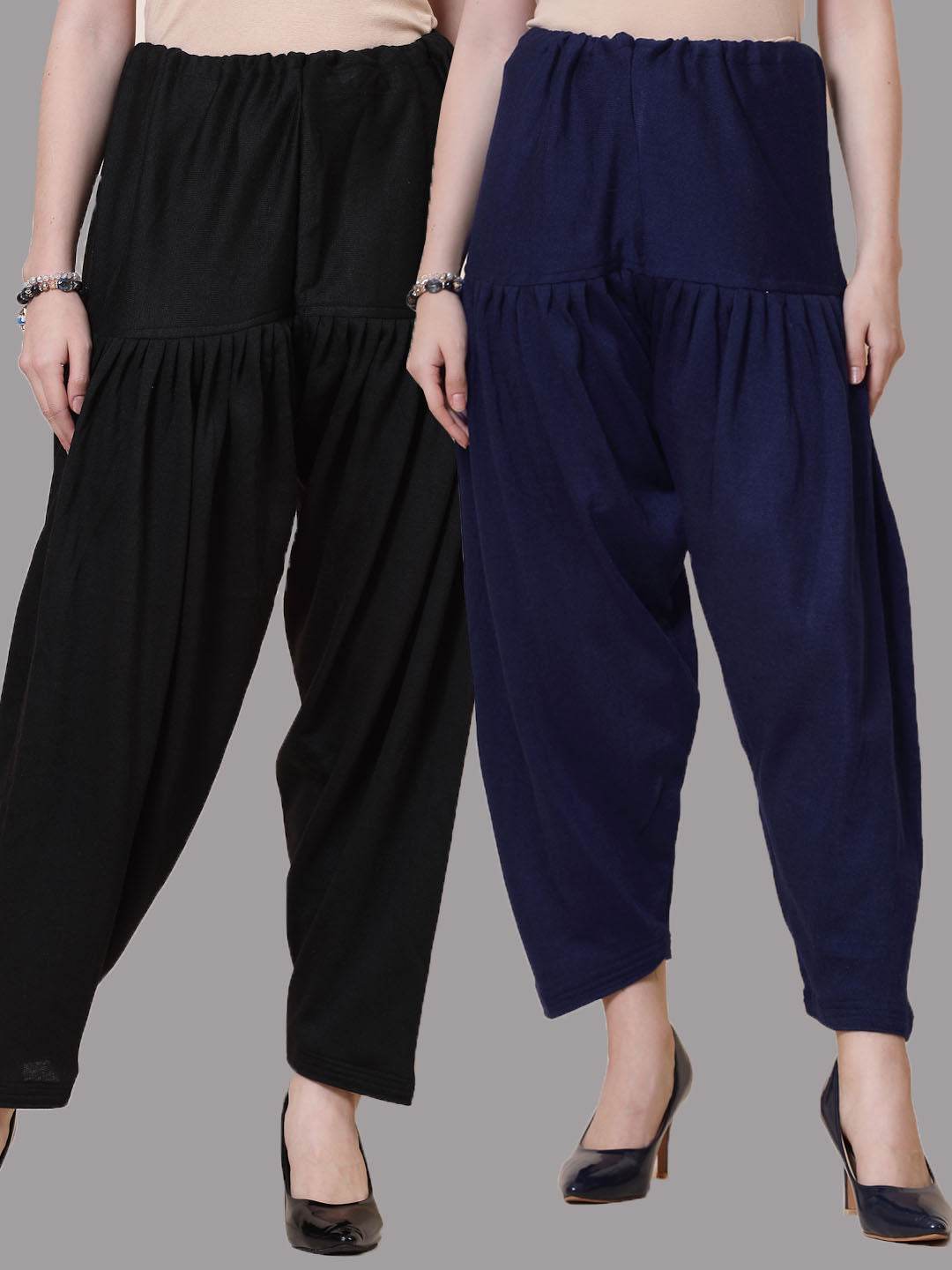 Black & Navy Blue Solid Woollen Salwar (Pack of 2)