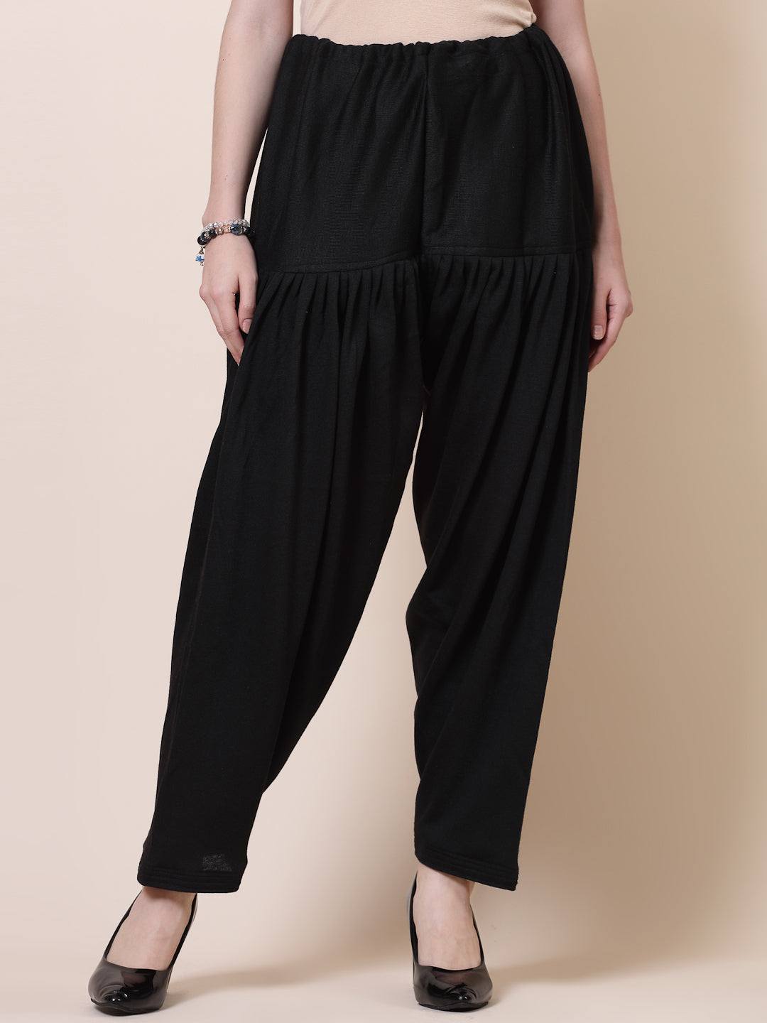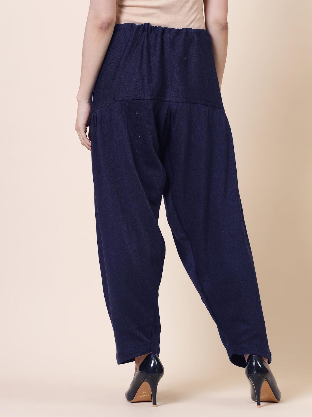 Black & Navy Blue Solid Woollen Salwar with Loose-Fit Semi Patiala Design and Drawstring Closure.