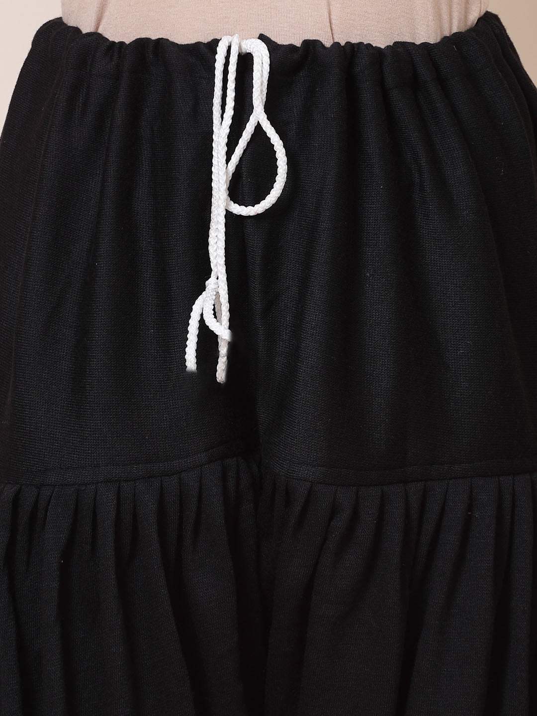 Black woollen semi Patiala salwar with drawstring closure.