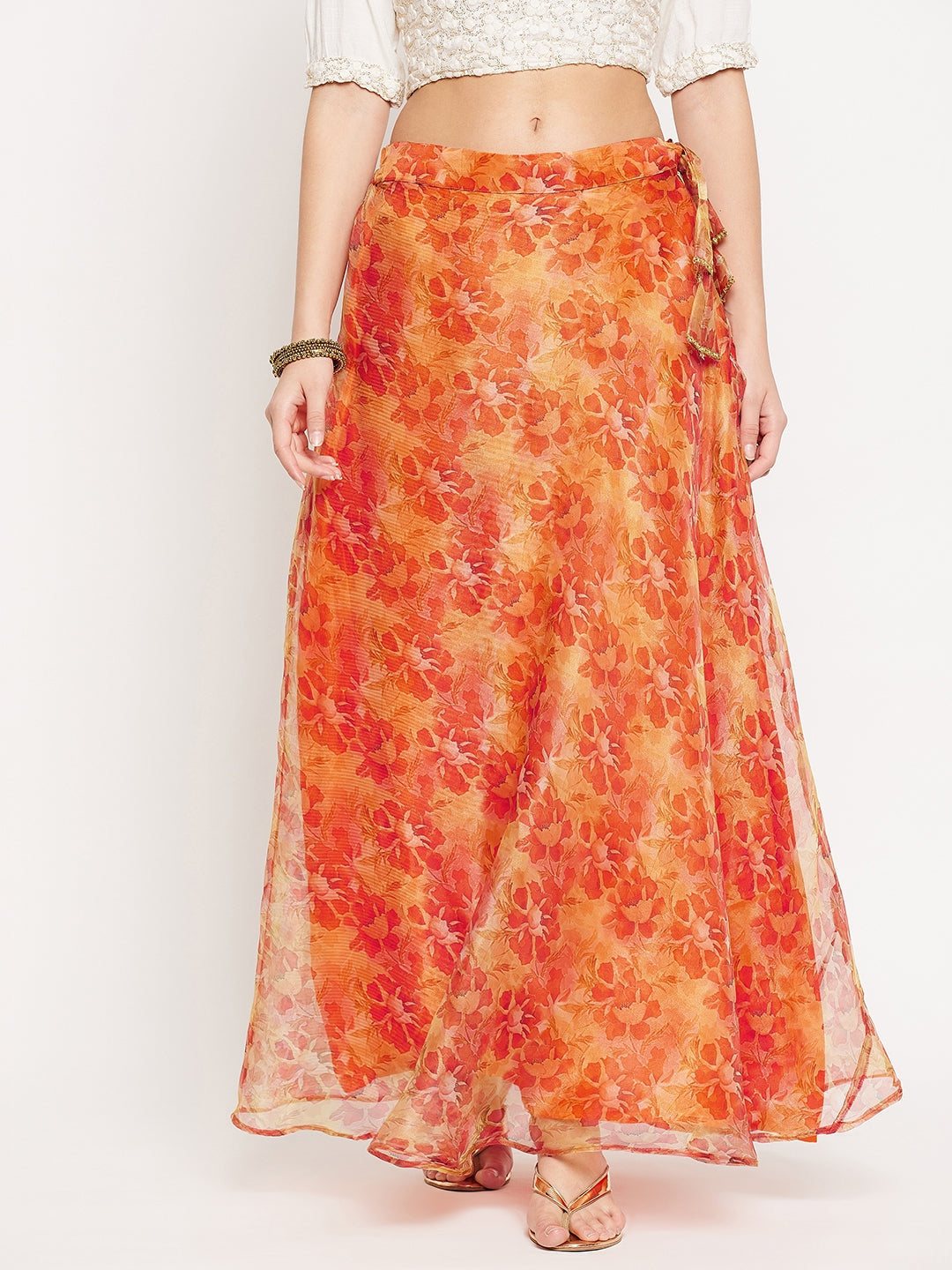 Orange Floral Printed Organza Skirt made from Organza - Clora Creation