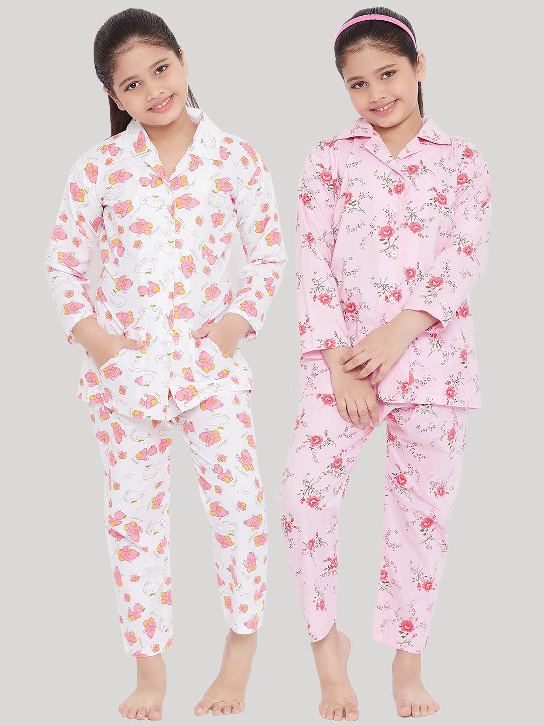 Make bedtime extra cozy and stylish with our White & Pink Printed Rayon Night Suit (Pack of 2) for girls. Crafted from soft, breathable rayon fabric, each night suit offers unmatched comfort that’s perfect for a restful night’s sleep. The vibrant pink and green prints add a fun and playful touch, making these night suits both adorable and functional. Designed with a relaxed fit, this night suit set ensures freedom of movement, ideal for lounging, sleeping, or even casual indoor wear. The premium-quality rayon fabric feels gentle against the skin, making it a perfect choice for kids with sensitive skin. Whether it’s for a sleepover or a cozy evening at home, this night suit combo keeps your little one snug and stylish. Easy to wash and maintain, each night suit is made to last through countless nights of sweet dreams.