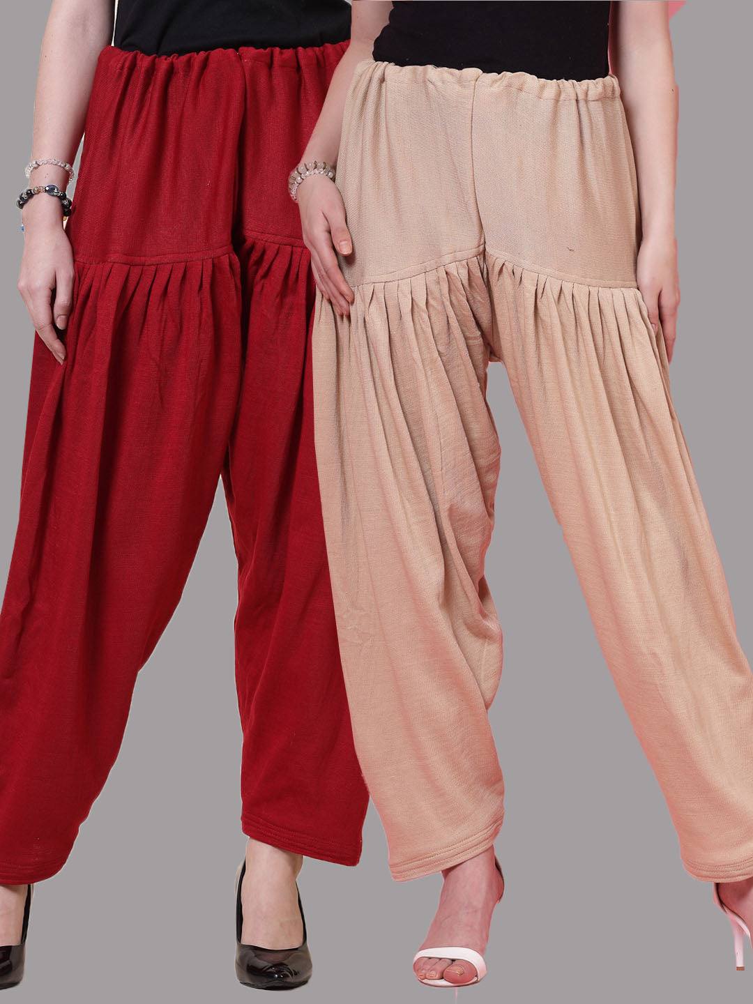 Maroon & Fawn Solid Woollen Salwar (Pack of 2)