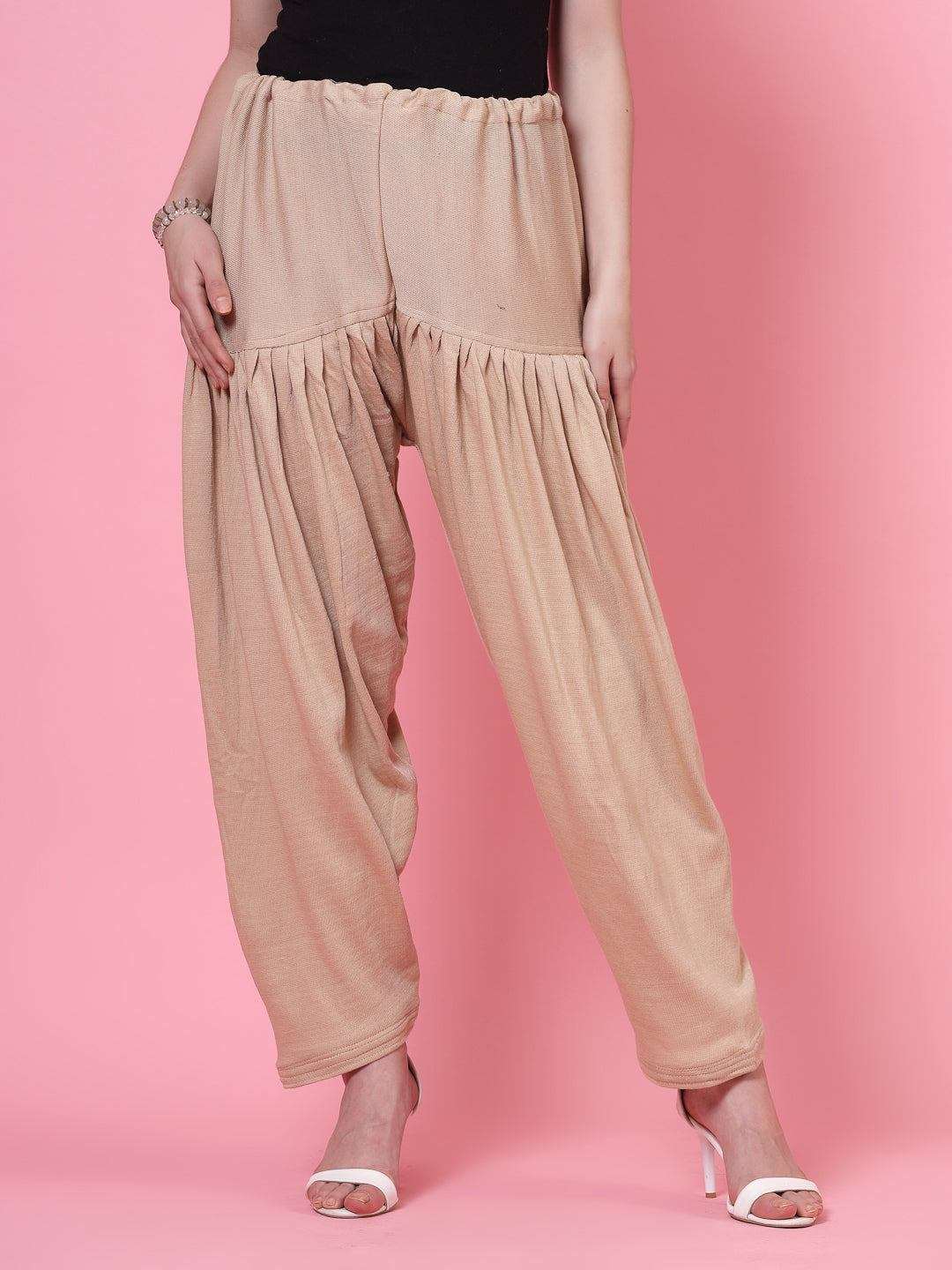 Maroon & Fawn Solid Woollen Salwar Pack with drawstring closure and loose-fit design.